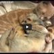 ぬいぐるみをギューッ!かわいらしい寝顔の子ネコ♡