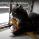 窓の外を眺めながら、眠くなっている子ネコちゃんを『よしよし』しています。やさしく ...