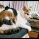 ちょこちょこと ネコちゃんの後を追いかける、コザクラインコ。とっても穏やかなネコ ...